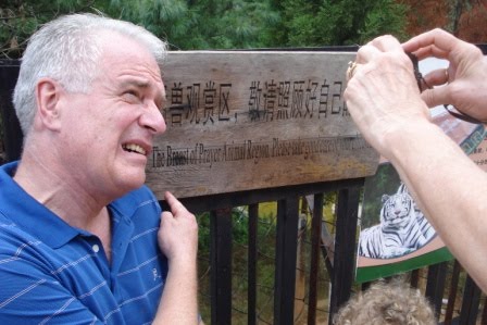 We've seen some bad Chinglish here, but this one is, well, interesting. Somehow the "beasts of prey" exhibit sign got translated into the "Breast of Prayer Animal Region."
